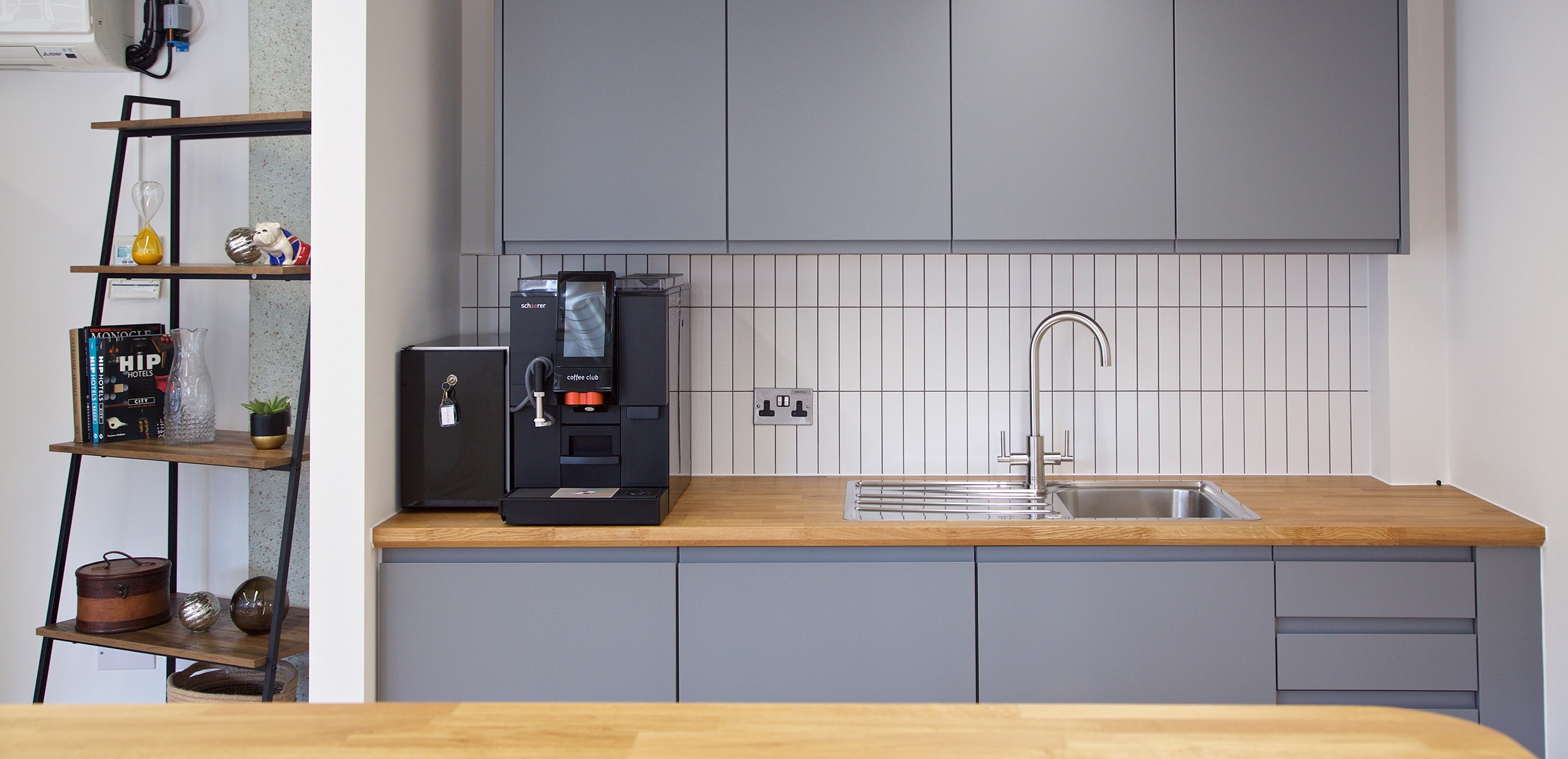 - Plaster finished ceiling with slimline linear LED suspended lighting system